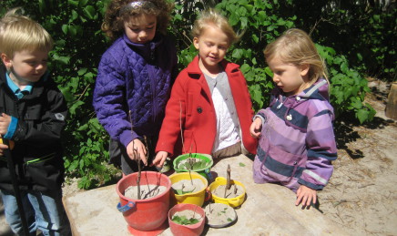 Når vi nærmer os påske og det tidlige forår, laver vi alle fine påskedekorationer, som børnene kan tage med sig hjem. Det kan for eksempel være påskekyllinger med karse i kurven.